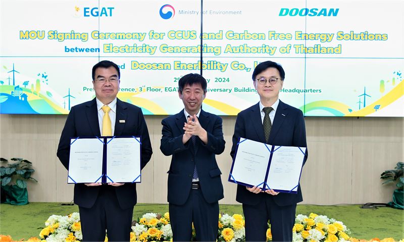 두 회사는 태국 내 운영 중인 발전소에 CCUS 기술을 적용하는 것을 비롯해 암모니아 및 수소 혼소, 신재생에너지 등의 도입을 위한 포괄적 협력을 약속했다. 태국 현지에서 열린 협약식에는 정환진 환경부 녹색산업해외진출지원단장, 김정관 두산에너빌리티 마케팅부문장, 티다데 에이암사이 태국전력청 부청장 등이 참석했다.