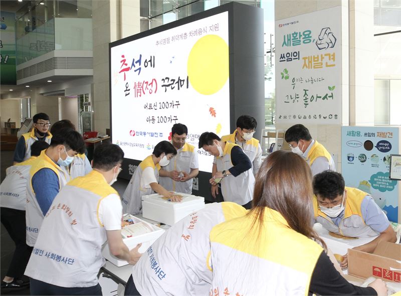 서울발전본부 봉사단은 지자체와 협력해 저소득층 1800가구를 선정하고, 이들에게 명절기념품과 전통시장상품권을 전달했다. 인천발전본부 봉사단은 전통시장과 지역아동센터 등 밀집장소 대상 코로나19 예방방역을 실시하고, 취약계층 125가구에 생필품을 전달했다.