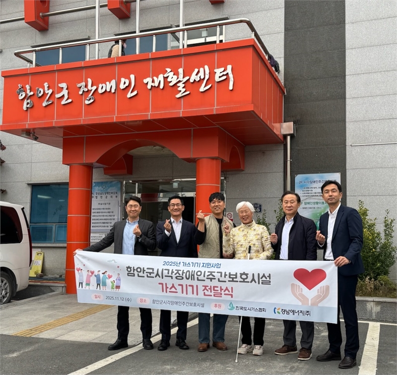 경남에너지와 한국도시가스협회는 지난 11일 경남 함안군 소재 시각장애인주간보호시설인 ‘함안군장애인재활센터’에서 지역 복지시설을 위한 ‘가스기기 지원사업’ 기증식을 개최했다.